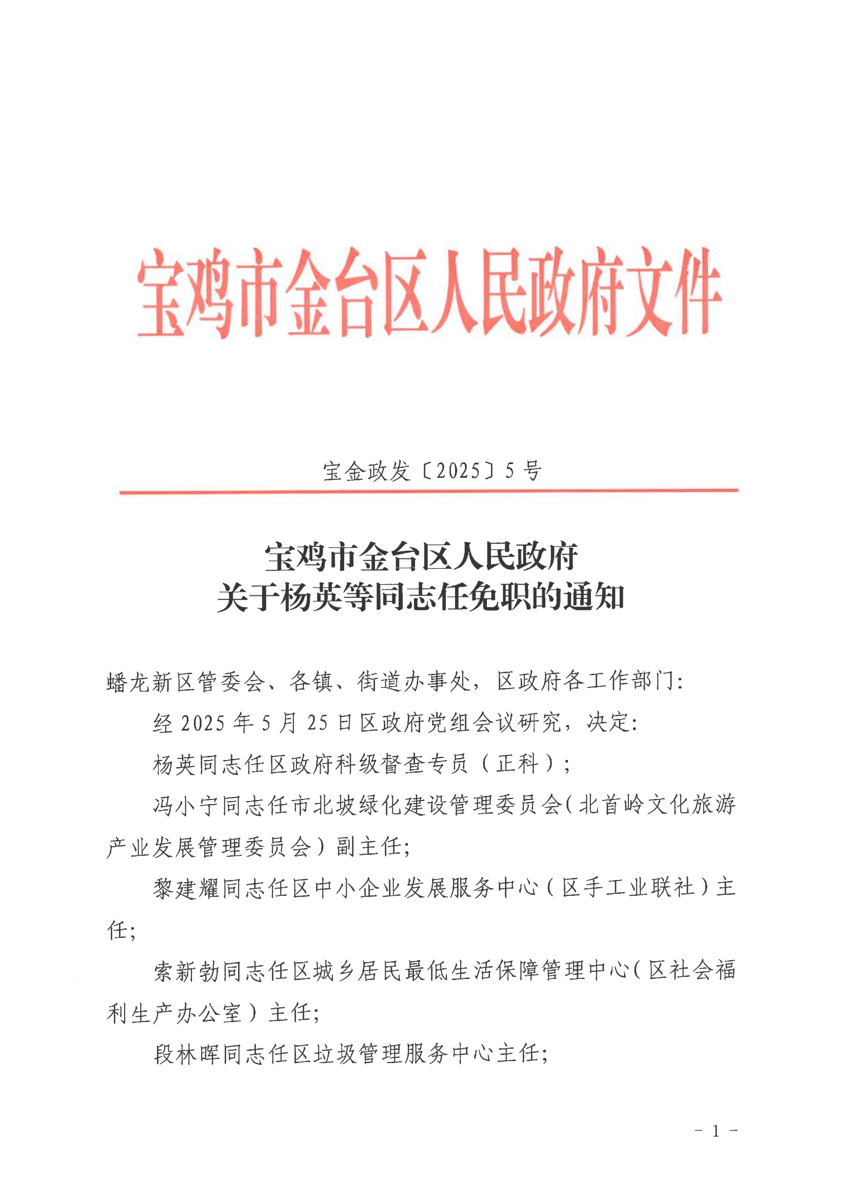 宝金政发〔2025〕5号 关于杨英等同志任免职的通知