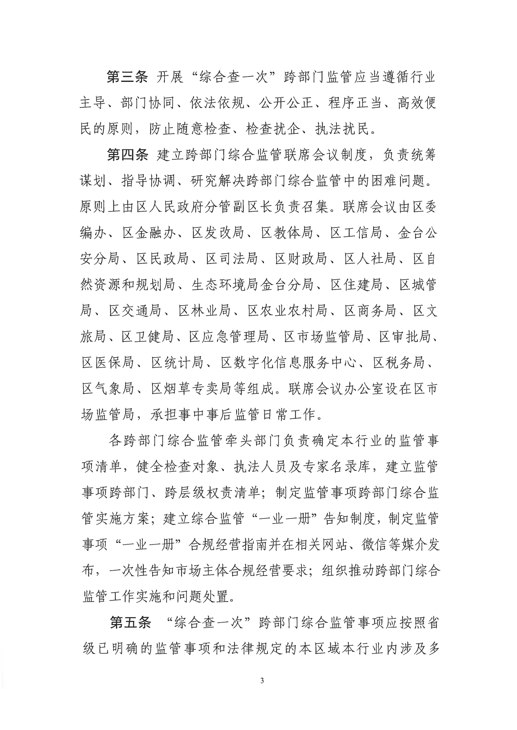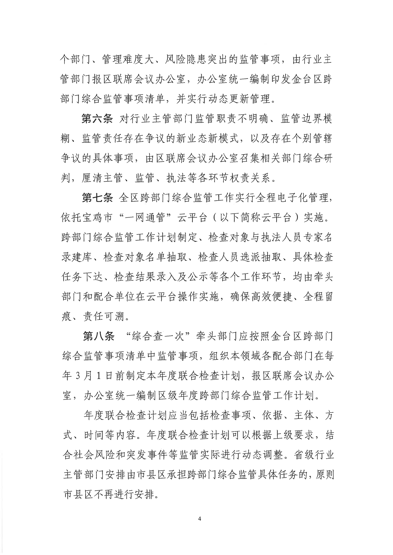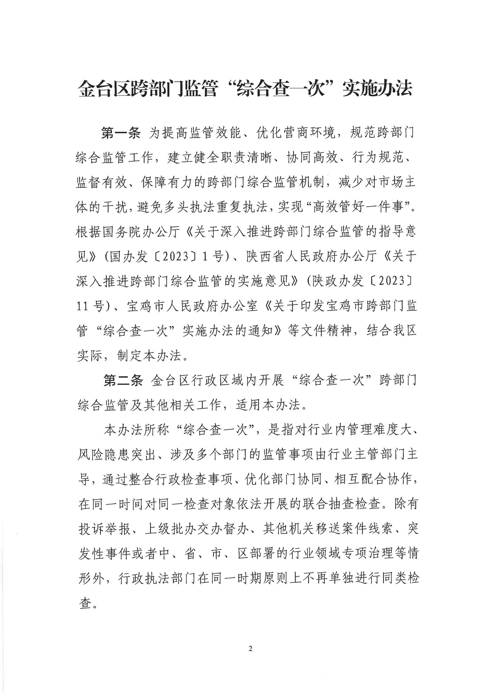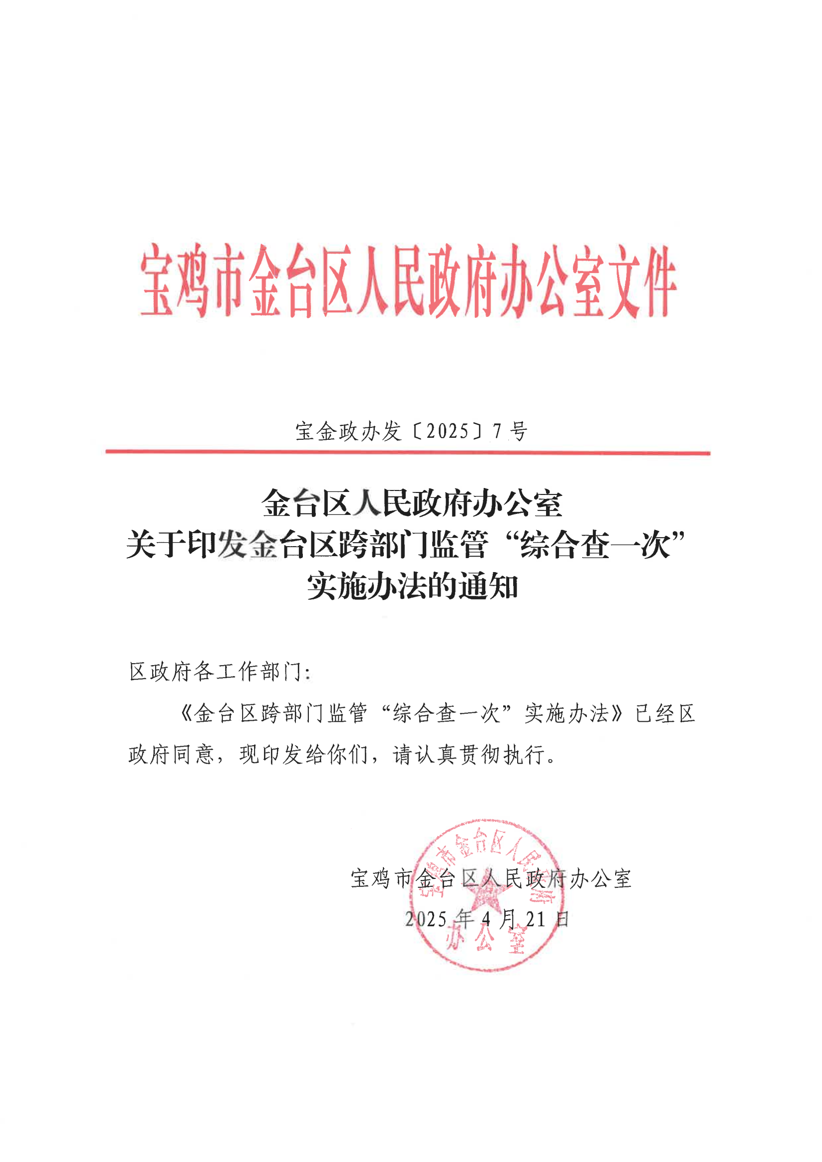 宝鸡市金台区人民政府办公室关于印发金台区跨部门监管“综合查一次”实施办法的通知
