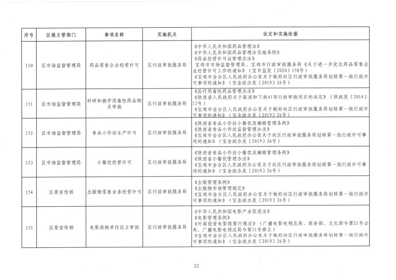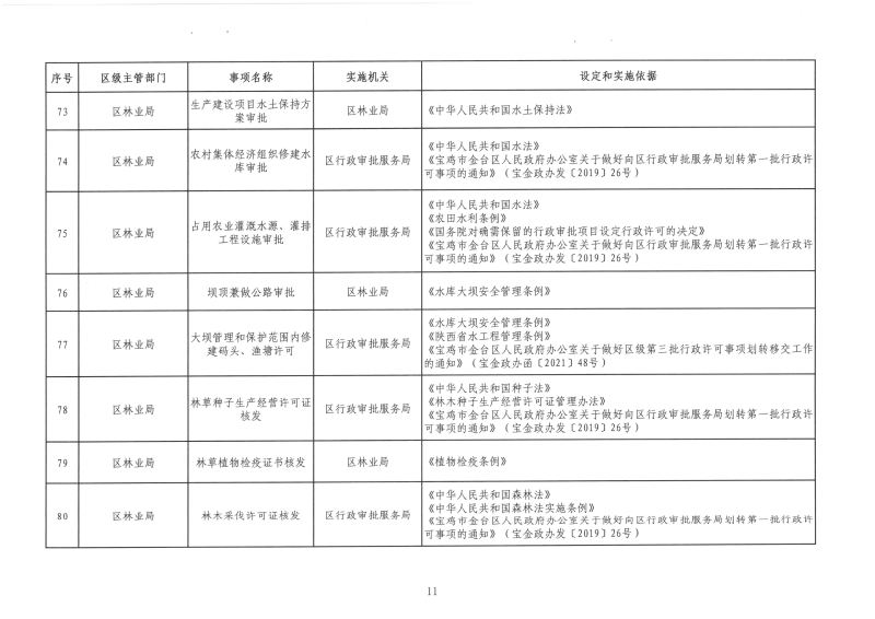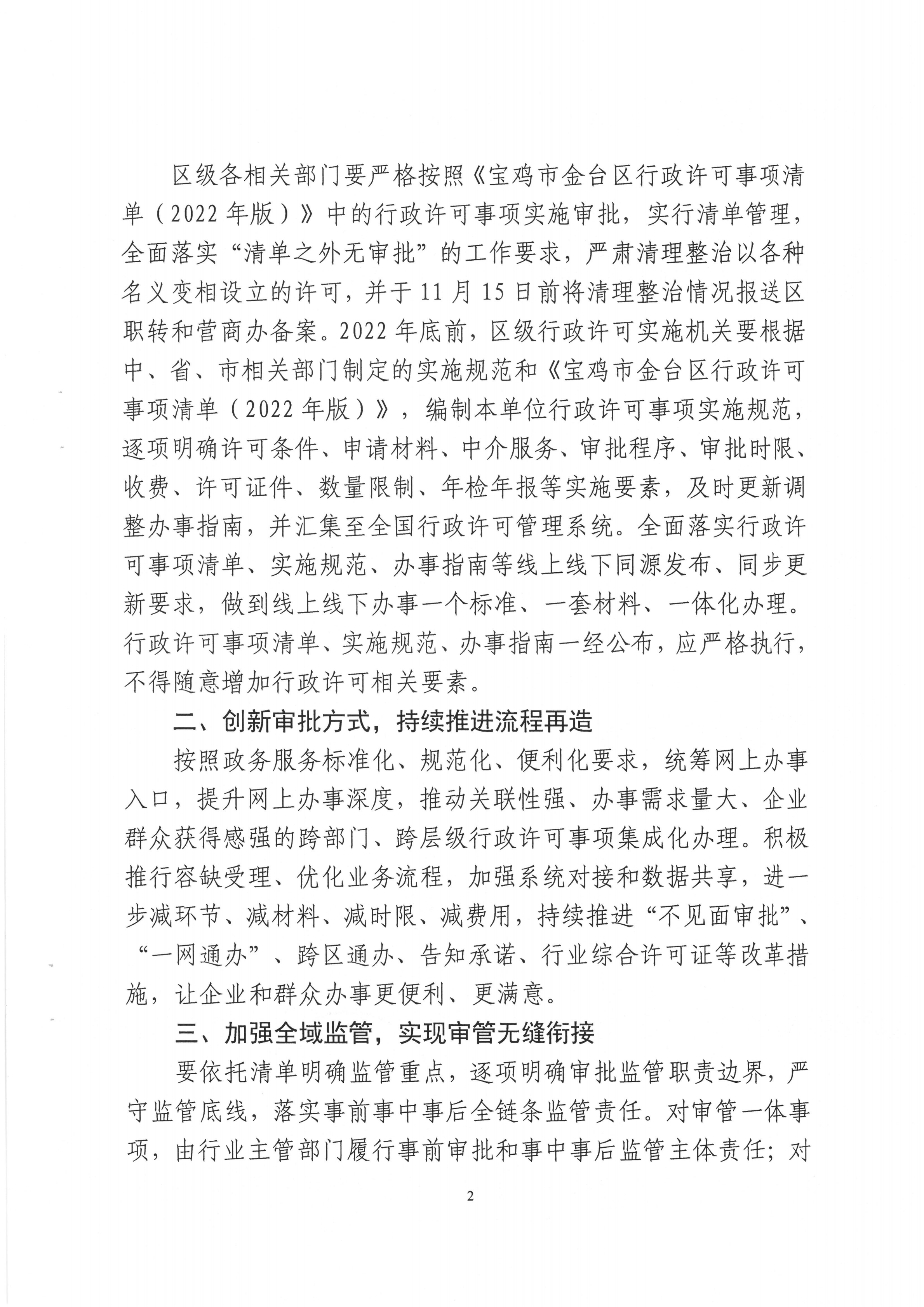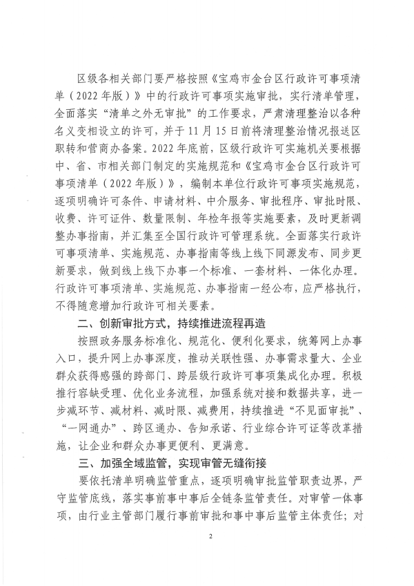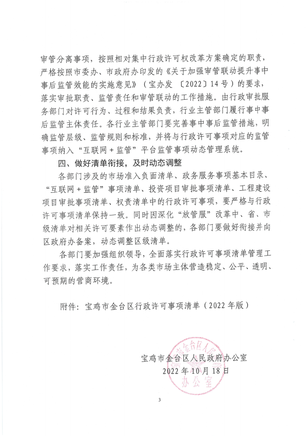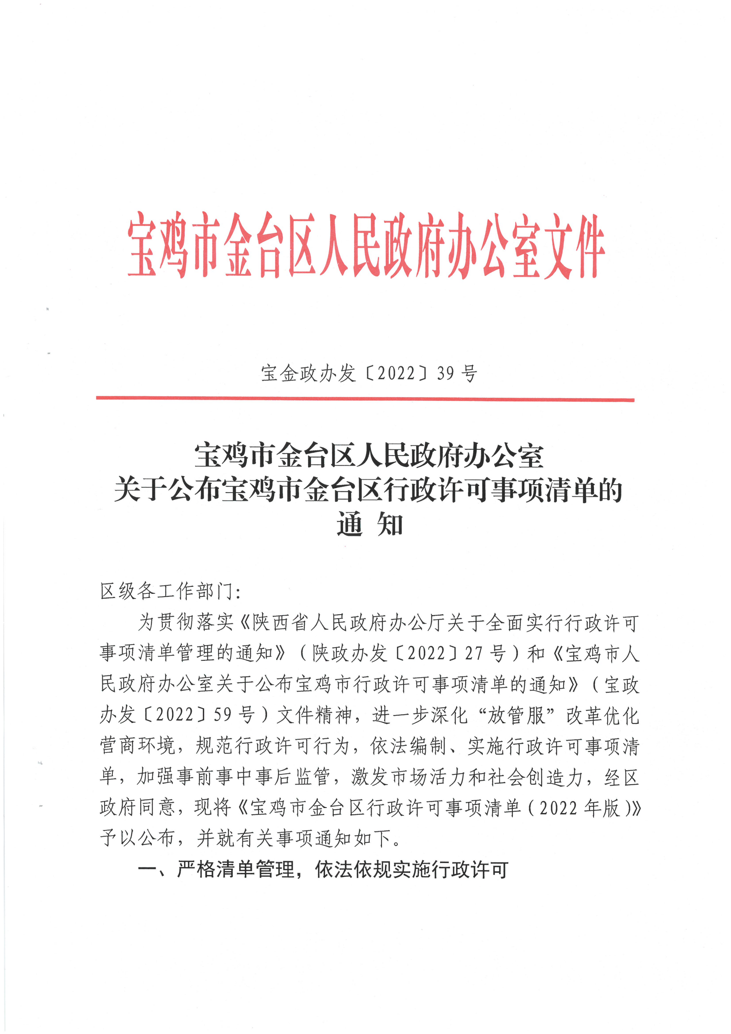 宝金政办发〔2022〕39号 关于公布宝鸡市金台区行政许可事项清单的通知