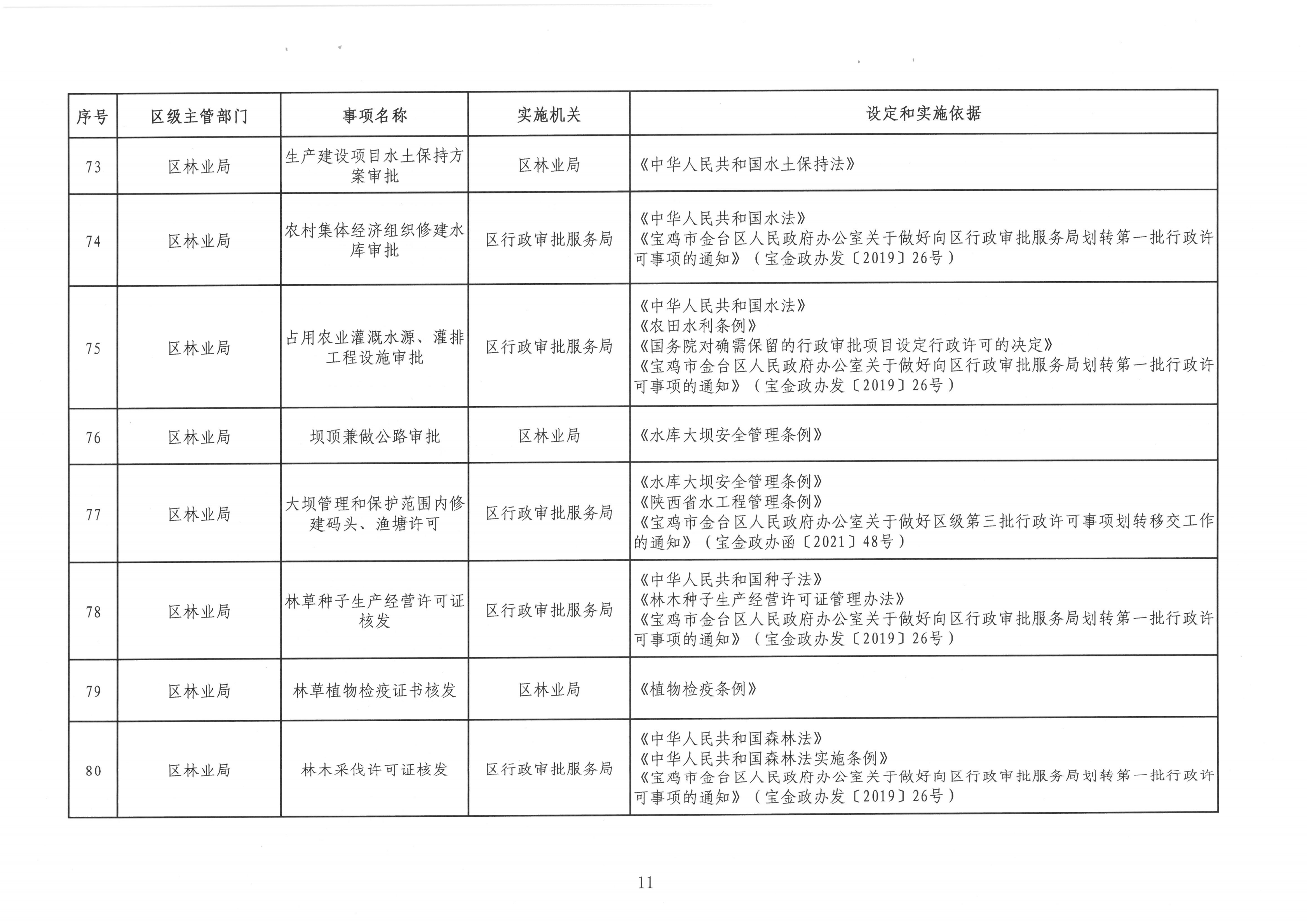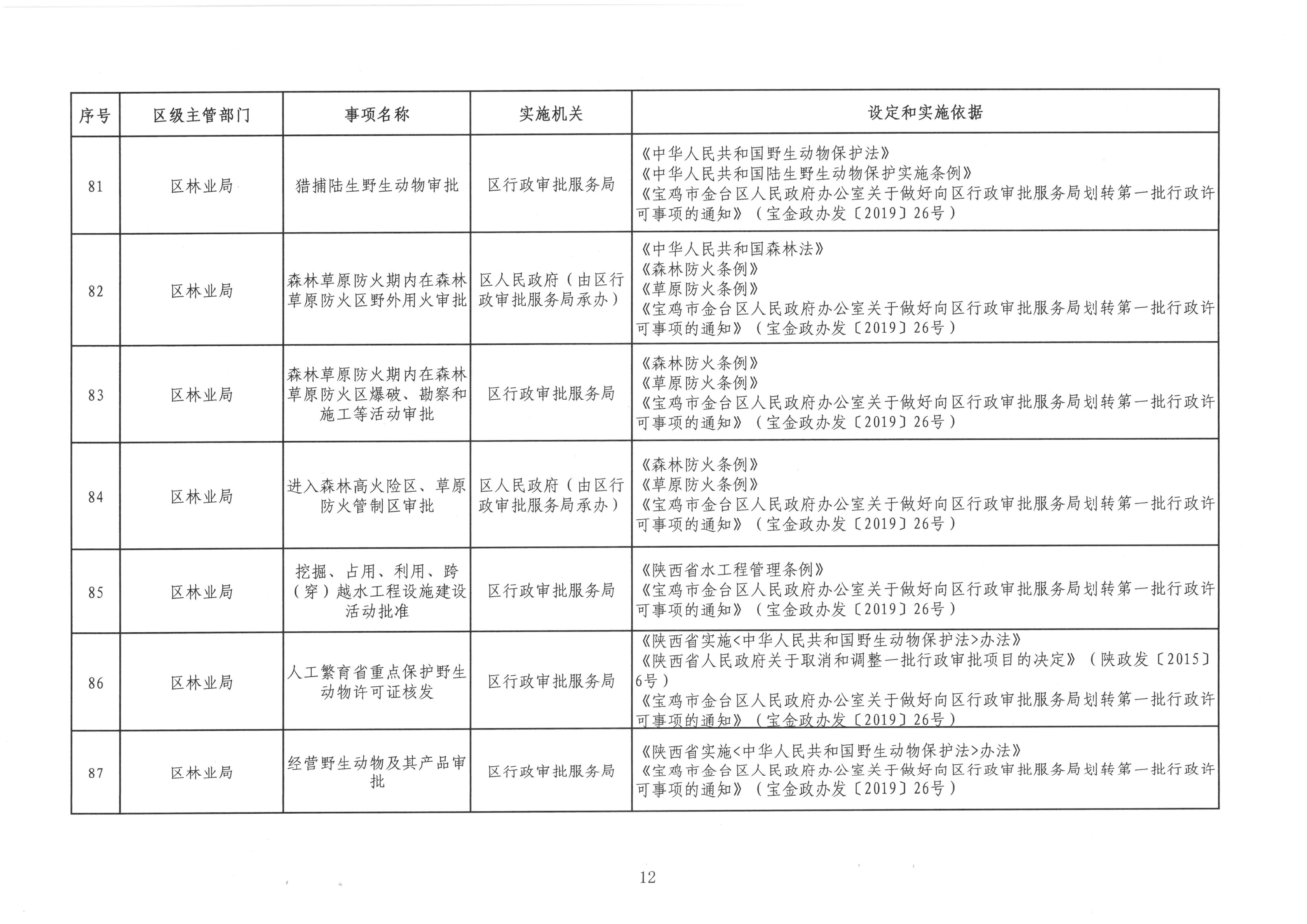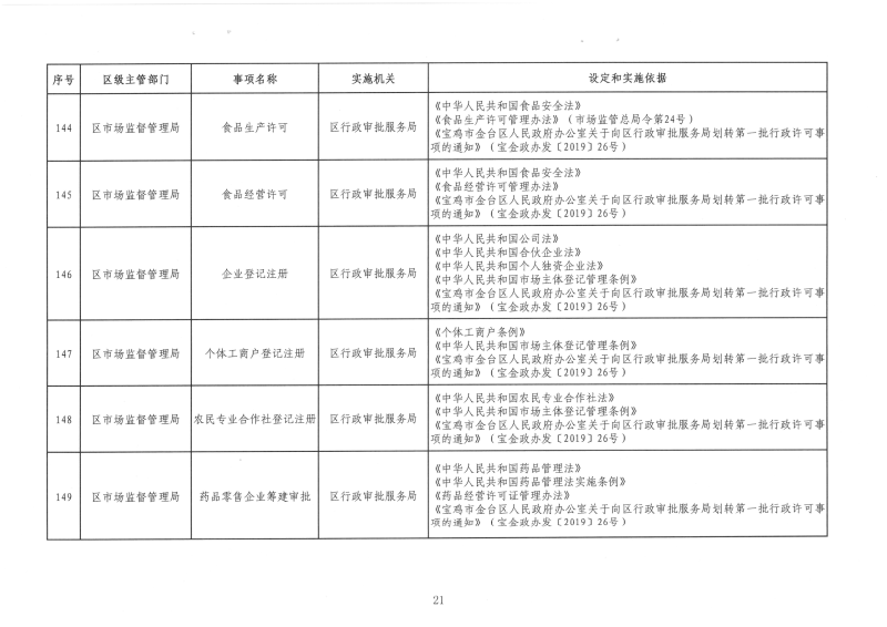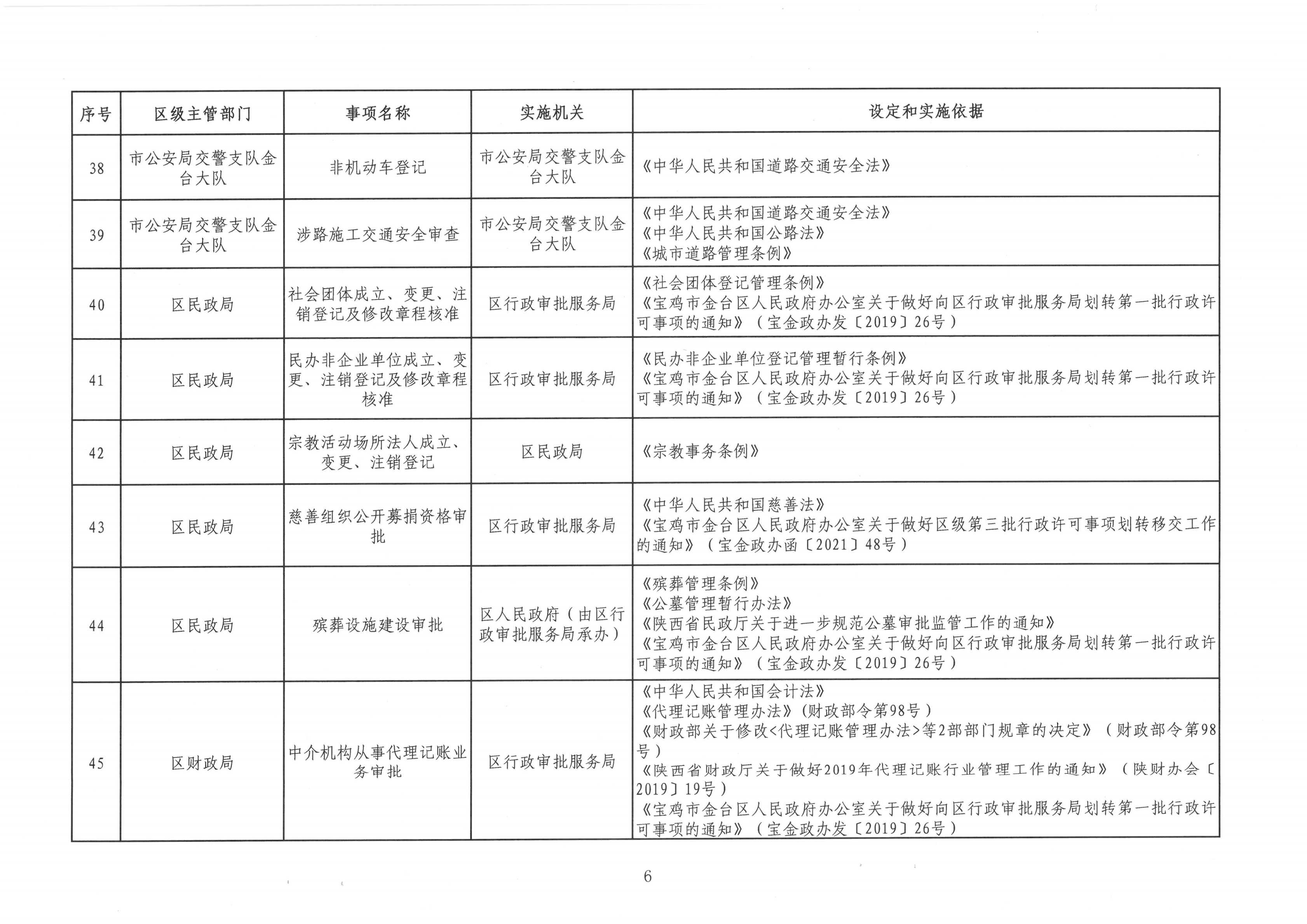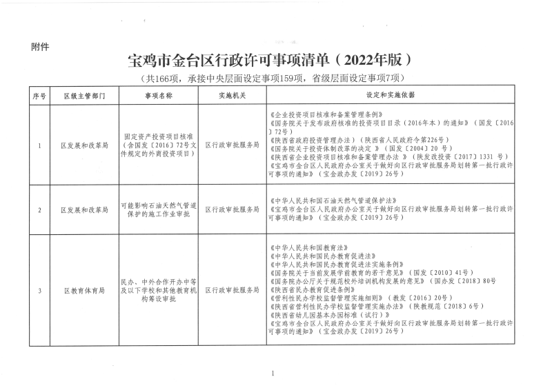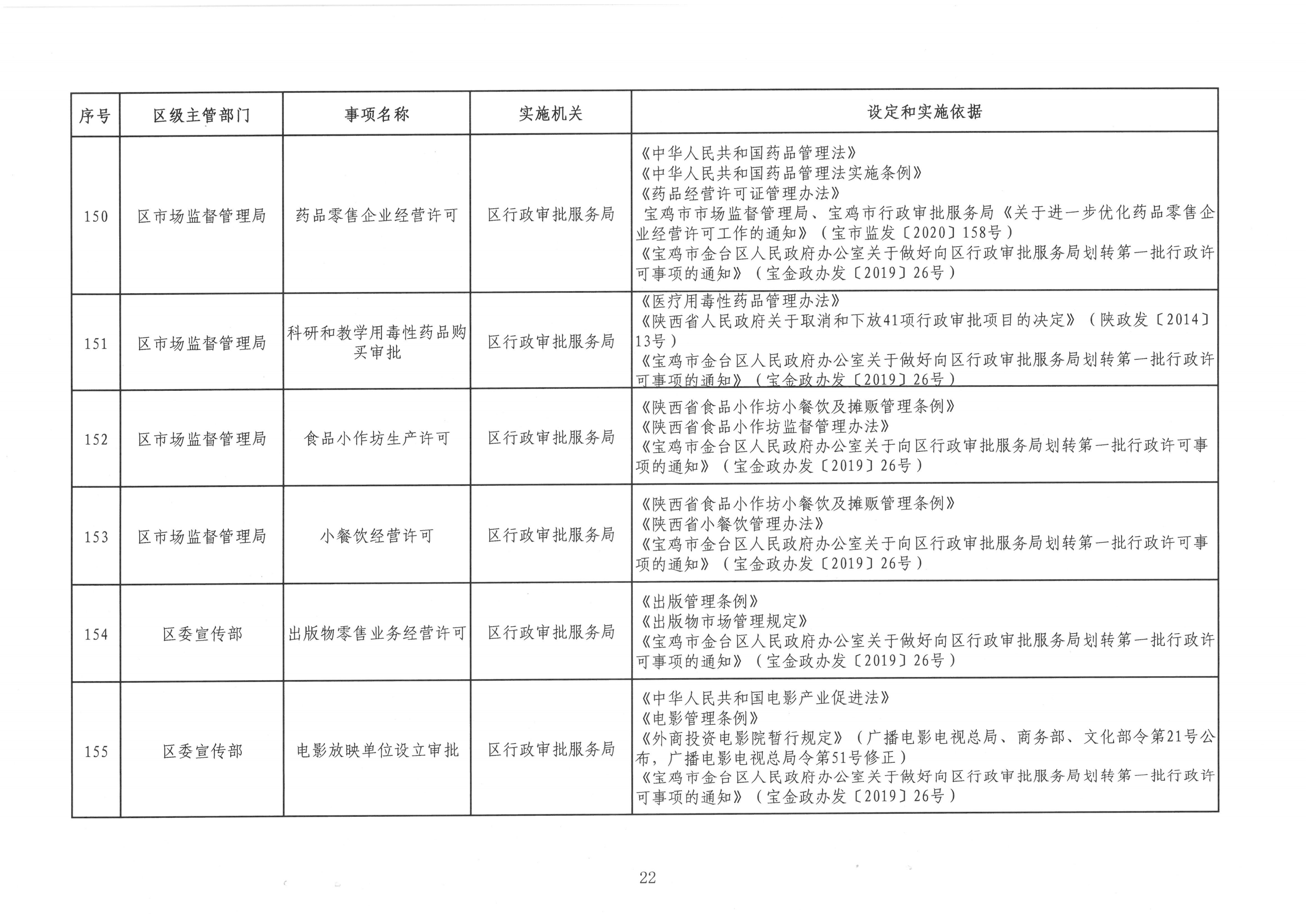 宝金政办发〔2022〕39号 关于公布宝鸡市金台区行政许可事项清单的通知