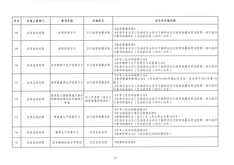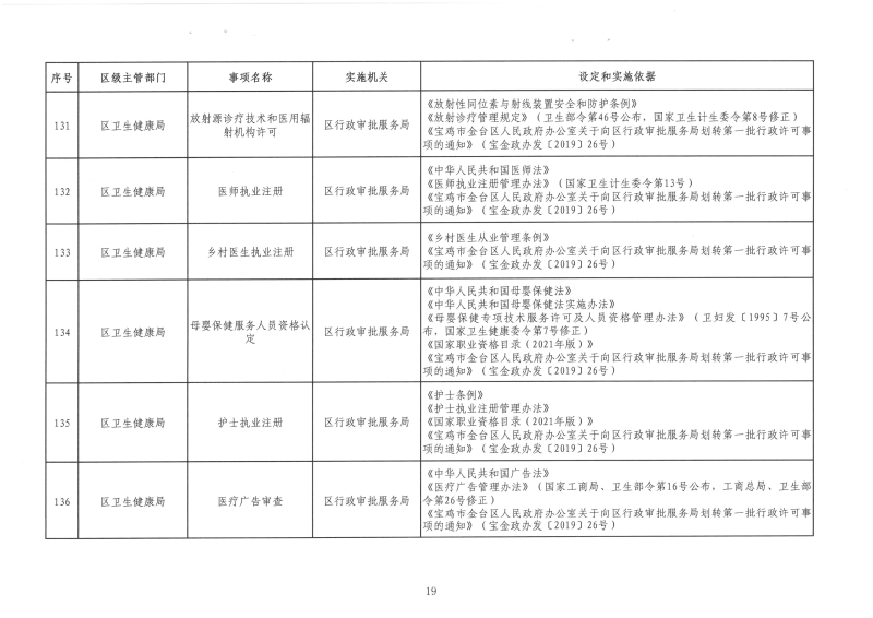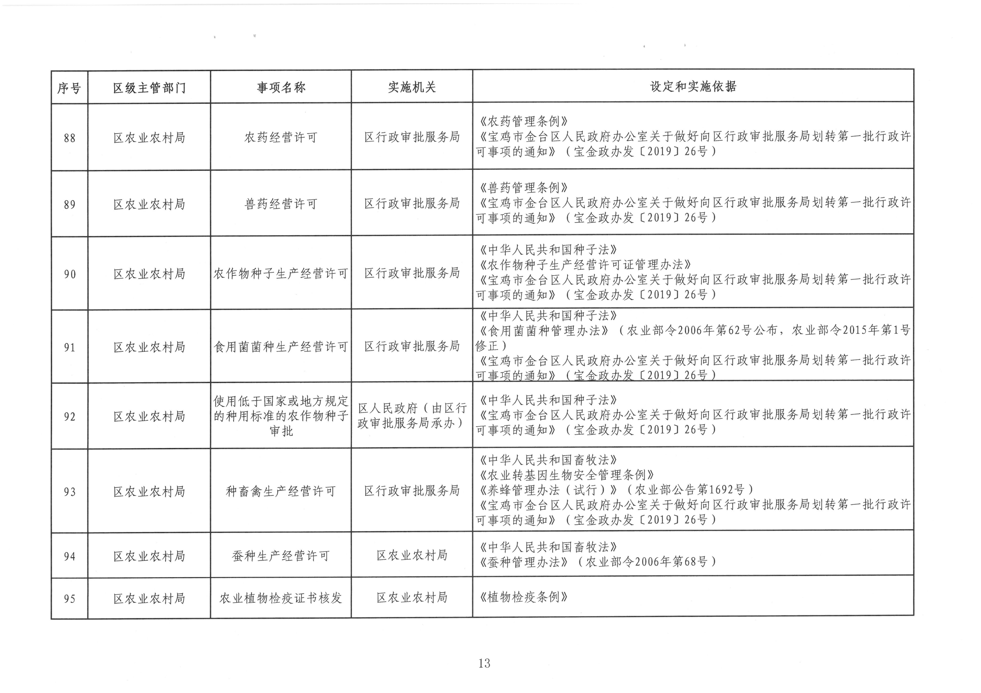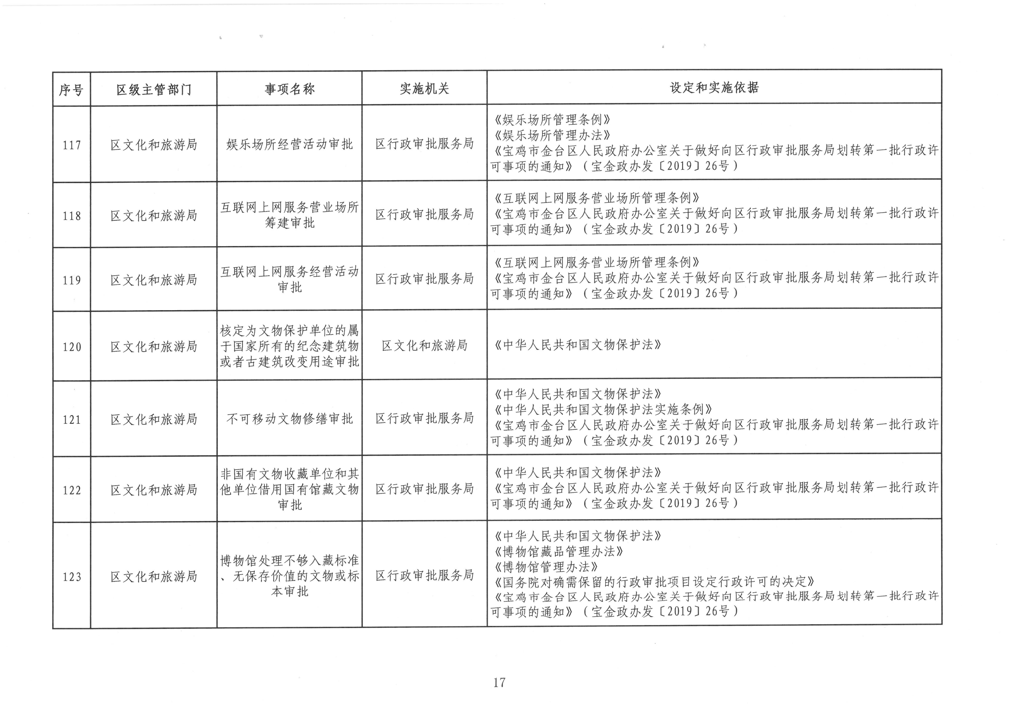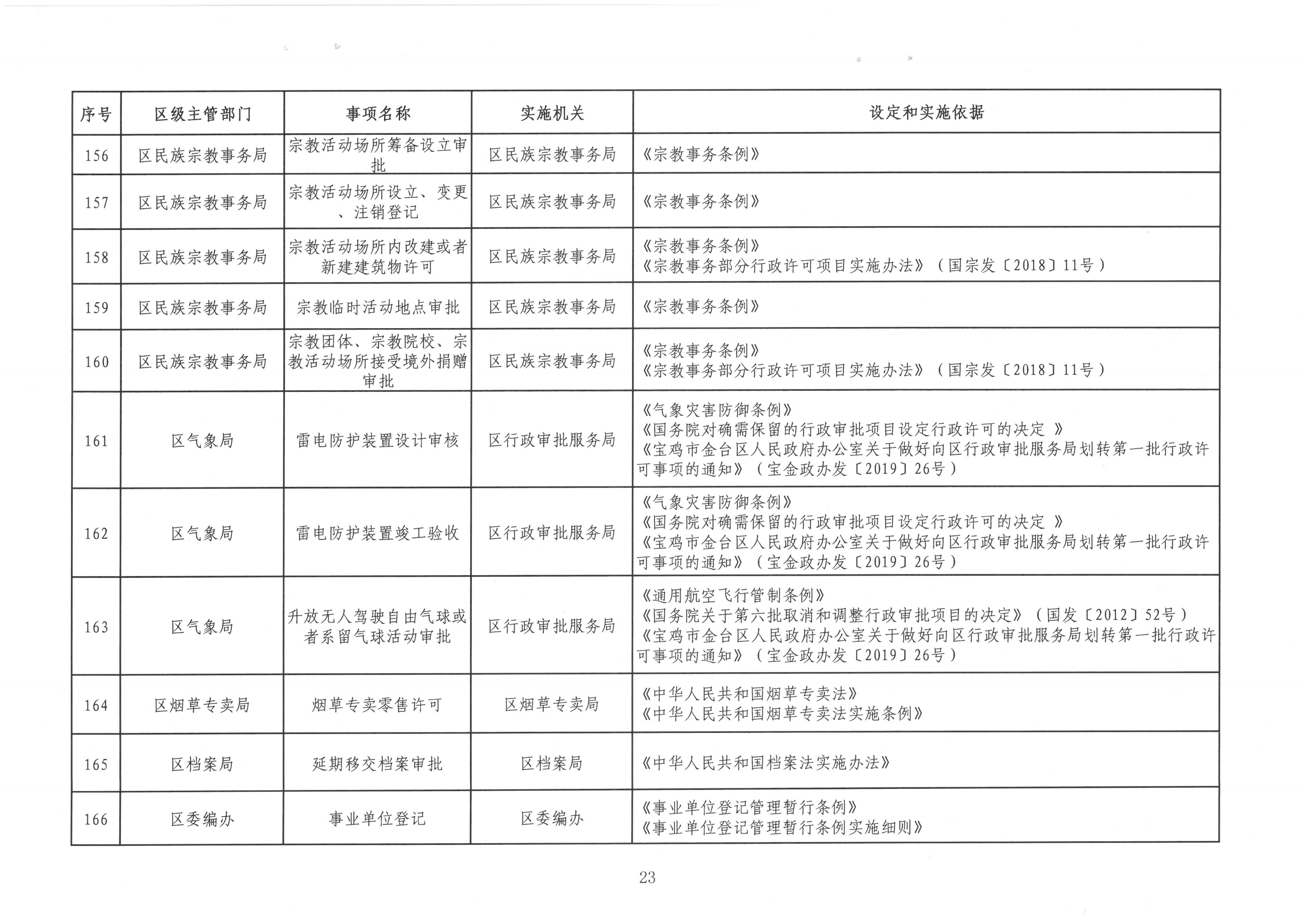宝金政办发〔2022〕39号 关于公布宝鸡市金台区行政许可事项清单的通知