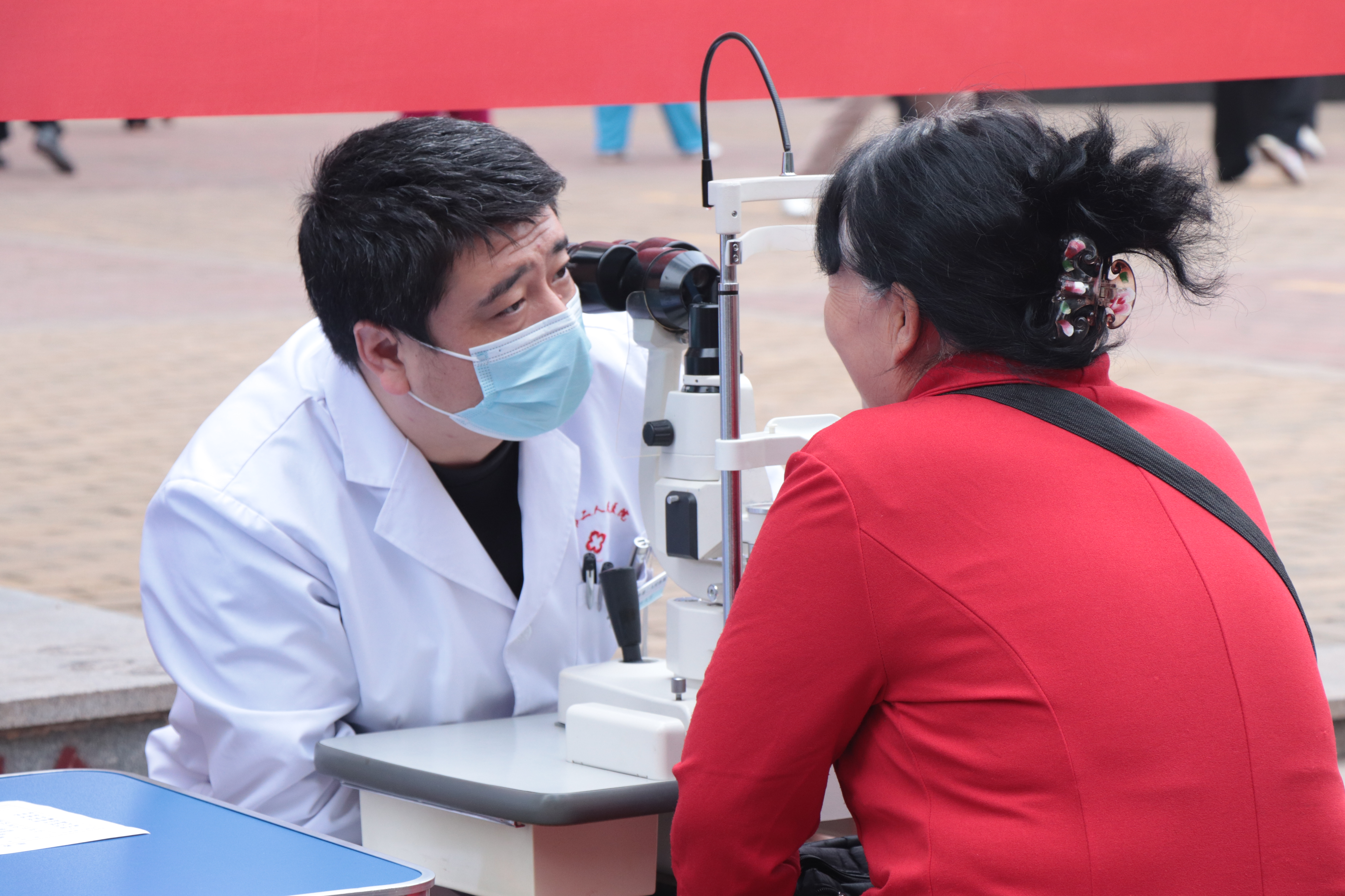 活动现场,眼科医生先向居民普及了白内障等眼科疾病的相关知识,解答大家关于眼部日常保健的咨询。随后,医生用专业仪器为居民进行视力和眼底检查,医生根据居民检查结果仔细讲解其眼部情况以及注意事项,特别叮嘱他们要多参加锻炼,定期体检,有身体不适要及早到医院进行检查治疗,养成健康的用眼卫生习惯。