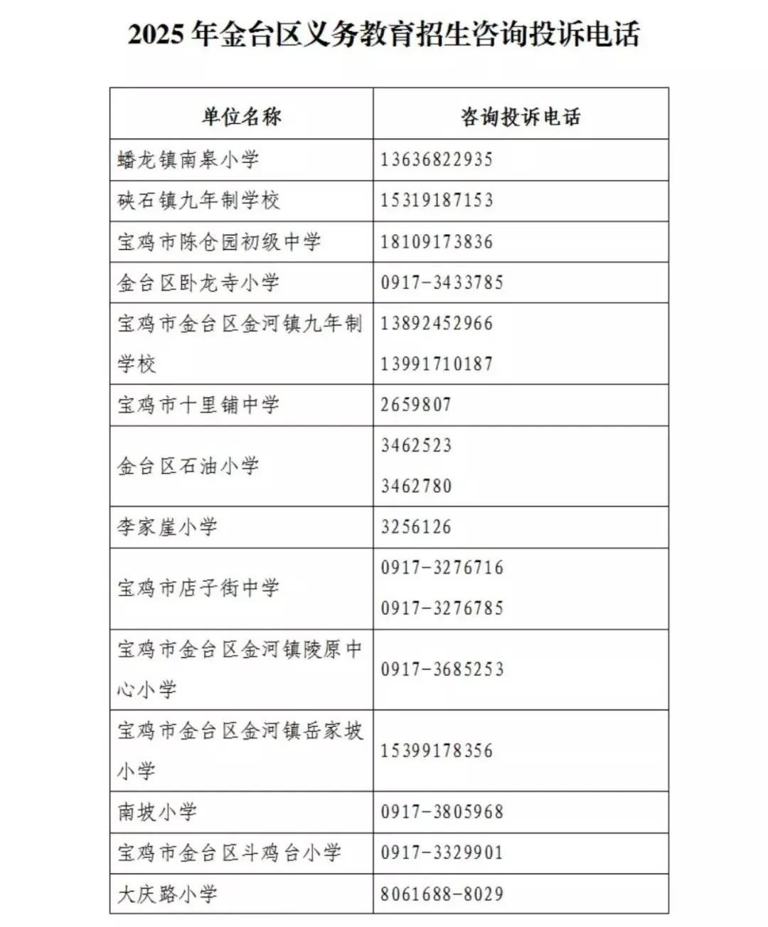 金台区2025年秋季义务教育学校小学、初中学区划分见附件。