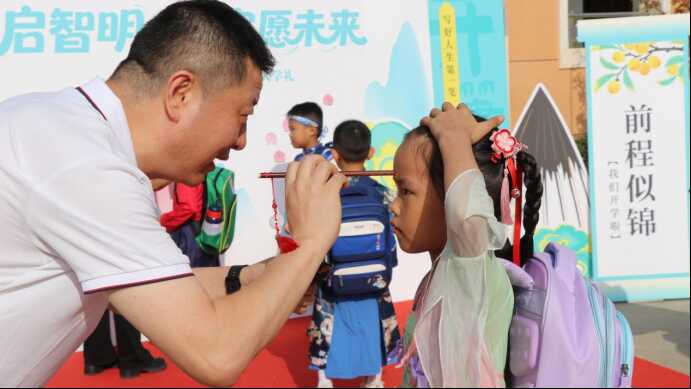 新生入学礼是帮助新生融入校园、建立归属感的重要仪式,更是新学期的特殊 “成长第一课”。各小学、幼儿园结合学段特点,策划富有仪式感的入学礼:新福园小学、陈仓路小学、三迪小学、东仁堡小学等校设 “朱砂启智”“开笔礼”,教师为新生点朱砂寓意启智,教他们书写 “人” 字悟做人道理。