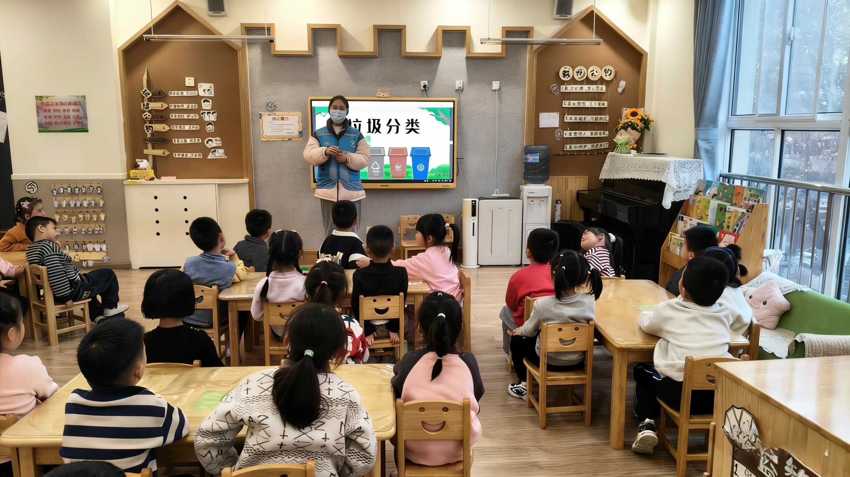 工作人员以贴近生活的提问“小朋友,啃剩的果核会去哪里呀?”拉开序幕,瞬间点燃了孩子们的好奇心。结合幼儿认知特点,工作人员通过色彩鲜艳的PPT课件、生动有趣的动画短片,直观展示垃圾乱堆乱放对河流、土壤的危害,以及分类回收后“变废为宝”的神奇过程——塑料瓶能变成新玩具,旧书本可化身手工纸,让抽象的环保知识变得通俗易懂。
