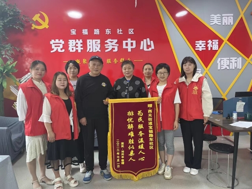 “感谢社区帮助,让我这么快就住上了心仪的养老院。”7月3日一大早,失独老人邓大爷在妹妹的陪伴下来到金台区西关街道宝福路东社区,他激动地捧着写有“为民服务温暖人心 排忧解难胜似亲人 ”的锦旗,感谢社区帮助他如愿以偿地入住养老院。