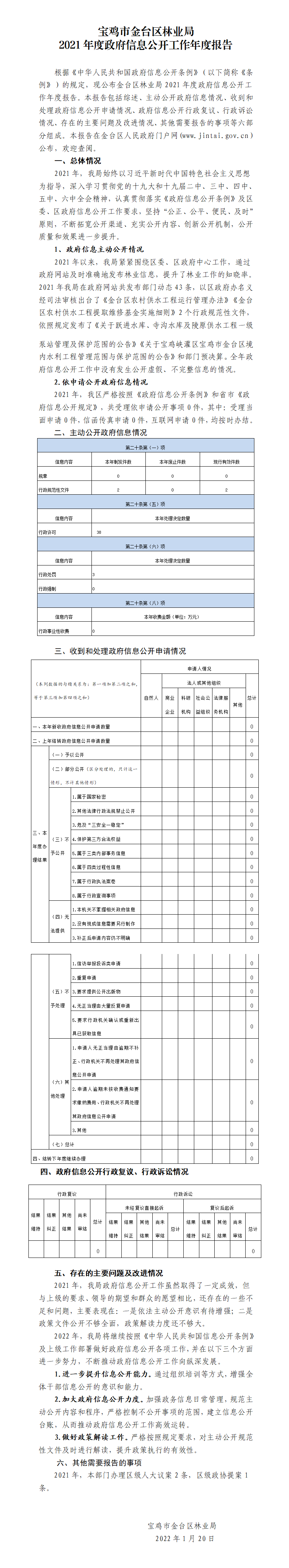 宝鸡市金台区林业局2021年度政府信息公开工作年度报告