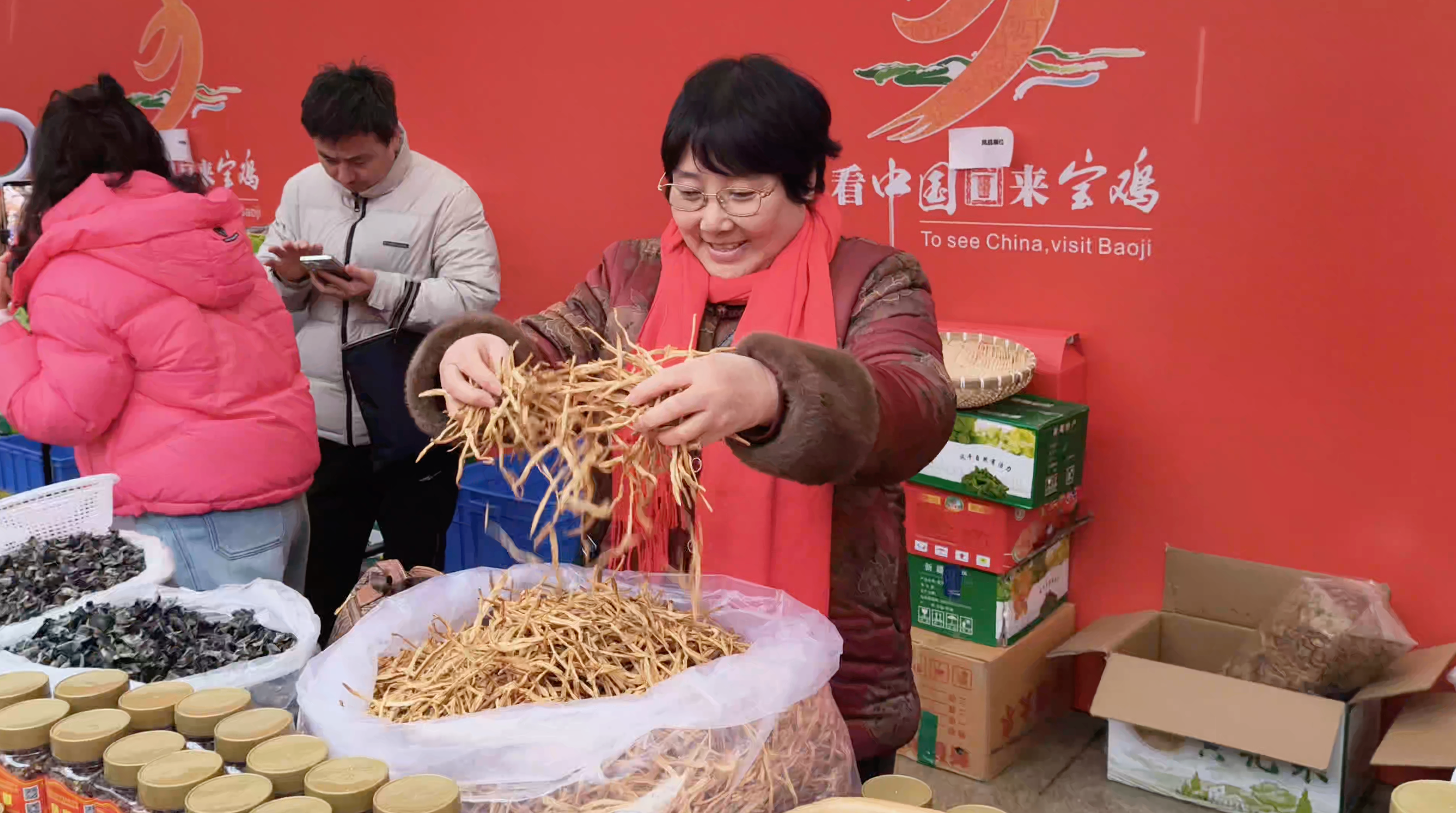 本届年货大集以“西府年味惠民迎春”为主题,将持续至2月12日(腊月二十五)。活动创新采用戏曲+市集模式,并同伙线下市集与线上年货节双线联动,着力打造春节消费新场景。现场汇聚90余家企业展出优质农产品、干果干货、文创产品、非遗手工等百余个品类。从红火的节庆饰品、新鲜的生鲜食材,到地道的本地山货、包装精美的精品礼盒,品类繁多的商品全方位满足了不同消费群体的采购需求。