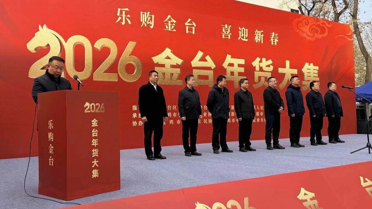 2月4日,2026“乐购金台 喜迎新春”金台年货大集在万通国际广场启动,同步拉开全区新春系列促消费活动的序幕。本次活动由区商务局、区文化和旅游局、陈仓镇人民政府联合主办,区委副书记闫启东宣布活动启动,副区长汪午强致辞,市商务局副局长朱晓华、区人大常委会副主任柏立新、区政协副主席王荣生参加活动,区商务局局长王玉良主持活动,区商务局、区文旅局相关负责人分别就系列促销活动、春节文化活动安排进行介绍。