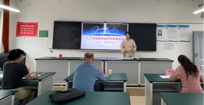 课堂展示环节强调教学实效。中学组教师围绕“在实践中追求和发展真理”等主题展开教学,小学组则借助绘本、动画和游戏等形式解析危害,课堂生动而富有意义。