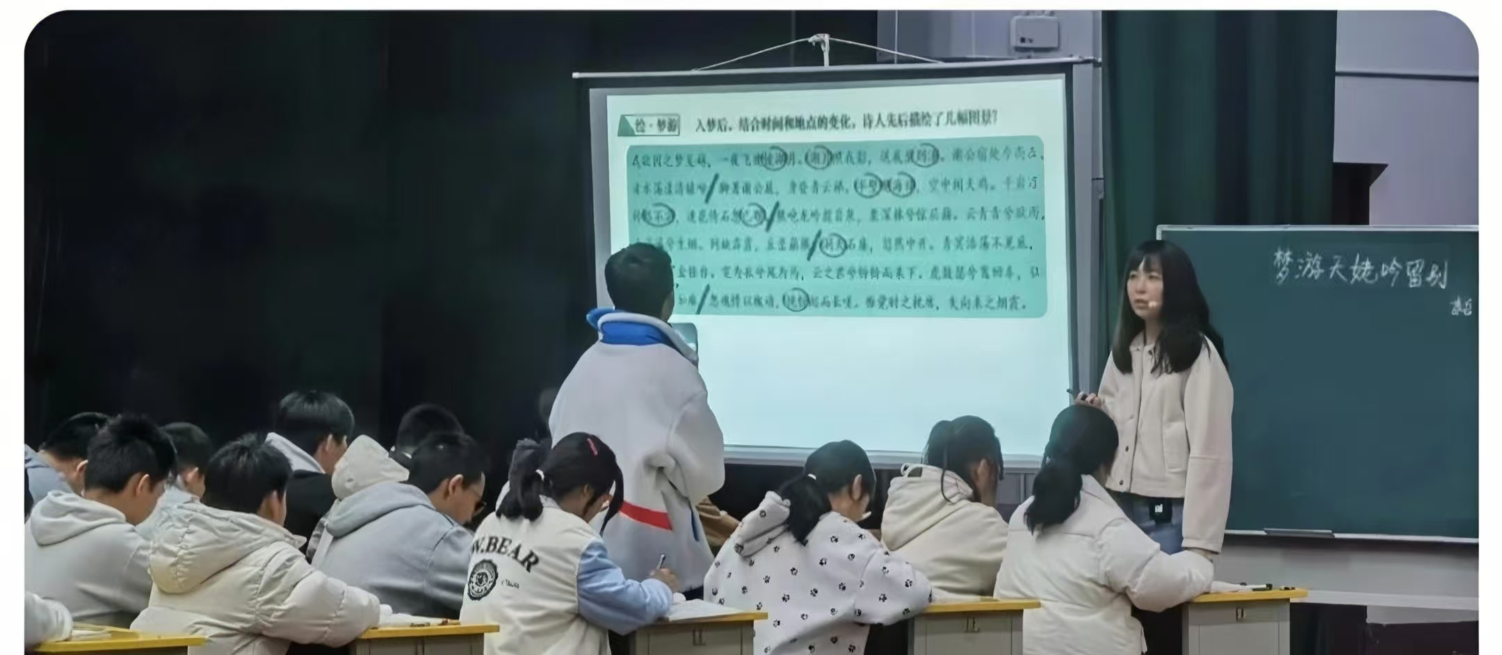 本次活动聚焦古典诗歌教学,展示了两节特色鲜明的示范课例。金台高中赵鸿老师以"遇见"为主线,打造《琵琶行》沉浸式音乐课堂,引导学生在情感共鸣中体悟诗歌意境;斗鸡中学贾彧涵老师以"析梦"为脉络,通过《梦游天姥吟留别》带领学生领略李白诗歌的浪漫情怀。两节课例设计新颖,师生互动充分,为古典诗歌教学提供了创新思路。