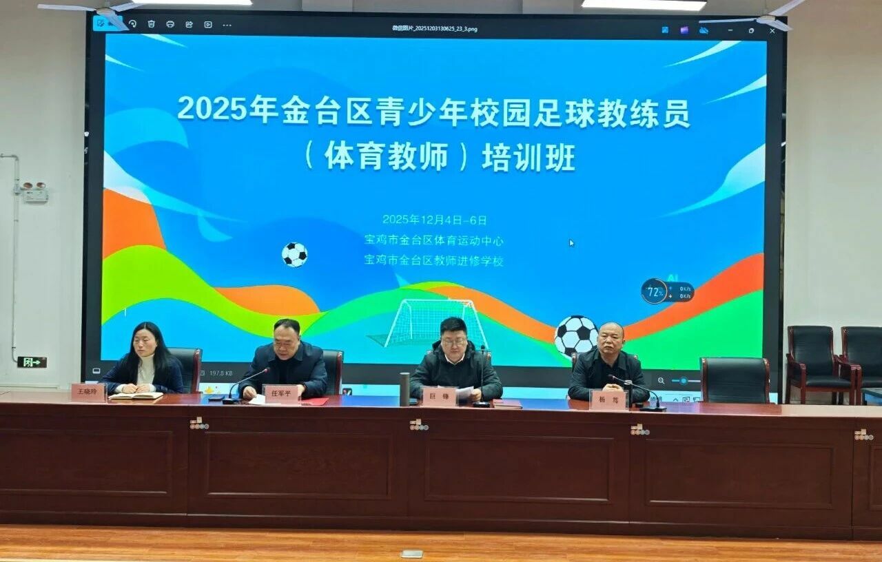 12月4日上午,2025年金台区青少年校园足球教练员(体育教师)培训班开班仪式在斗鸡中学阶梯会议室举行,区教体局党组成员、副局长巨锋出席开班仪式并讲话,开班仪式由区体育运动中心主任任军平主持、区教师进修学校校长杨笃等出席开班仪式。本次培训班为期三天,将对全区80多名足球教练员(体育教师)进行足球理论知识和实践训练、比赛、及足球规则等方面进行系统培训。