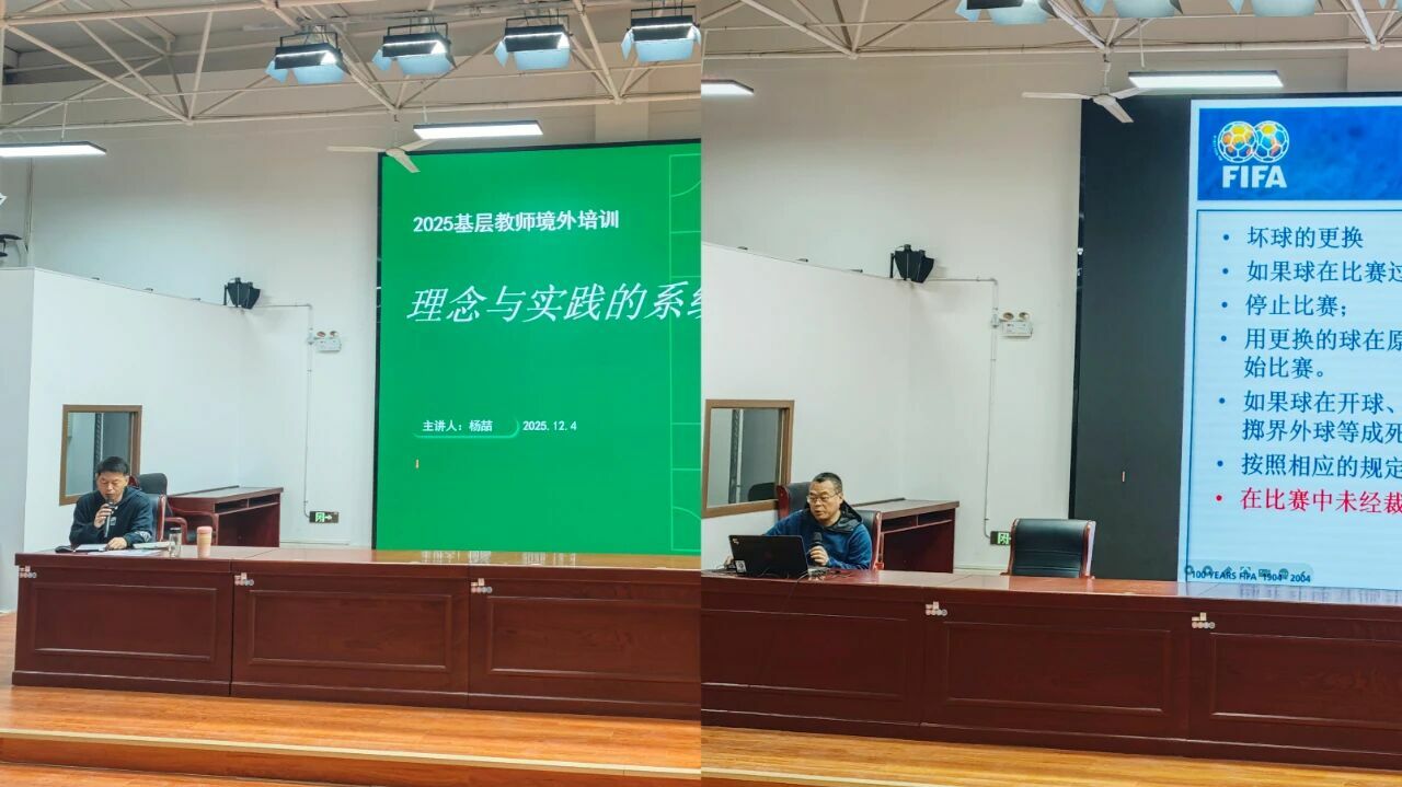 此次培训由区体育运动中心、区教师进修学校联合举办,邀请2025年全国校园足球基层教师境外培训团成员杨喆老师及金台区校园足球联赛裁判长王向东老师授课,旨在更好地促进我区校园足球工作深入开展,全面提升校园足球“教学、训练、竞赛”体系的完整性,进一步加强教练员队伍建设,提高教练员专业水平和执教能力,达到更好地辐射全区中小学生校园足球水平,形成共同提升的良好局面。