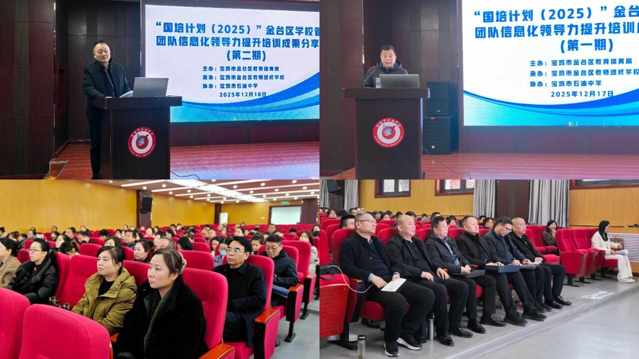 12月17日-18日,“国培计划(2025)”金台区学校管理团队信息化领导力提升培训成果分享会分两期在石油中学顺利举办。区教体局领导班子成员、区教师进修学校与区教研室负责同志,以及全区中小学幼儿园400余名校园管理者共同参会,围绕培训收获交流心得、聚焦实践路径展开研讨、共谋校园数字化发展新图景。