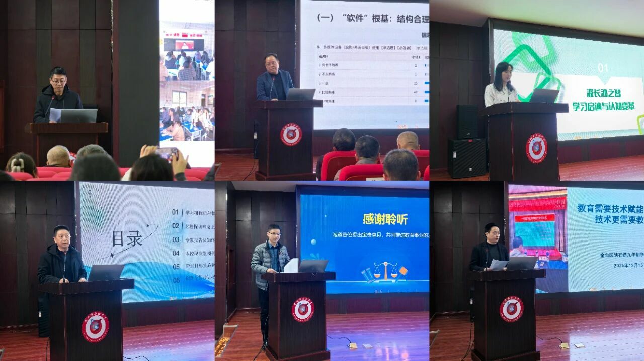 在交流分享环节,27位优秀校园长及区教研室电教中心负责人结合各校(园)实际,围绕培训收获、数字化建设典型案例、《数字素养提升与校园数字化建设方案》实施要点等内容进行了汇报展示。分享内容涵盖智慧校园规划、课堂教学数字化应用、教师数字素养提升、学生发展精准支持等多个方面,通过具体数据、生动案例与实践反思,集中呈现了金台区在教育数字化领域的探索成果,也为与会者提供了可借鉴、可推广的经验参考。