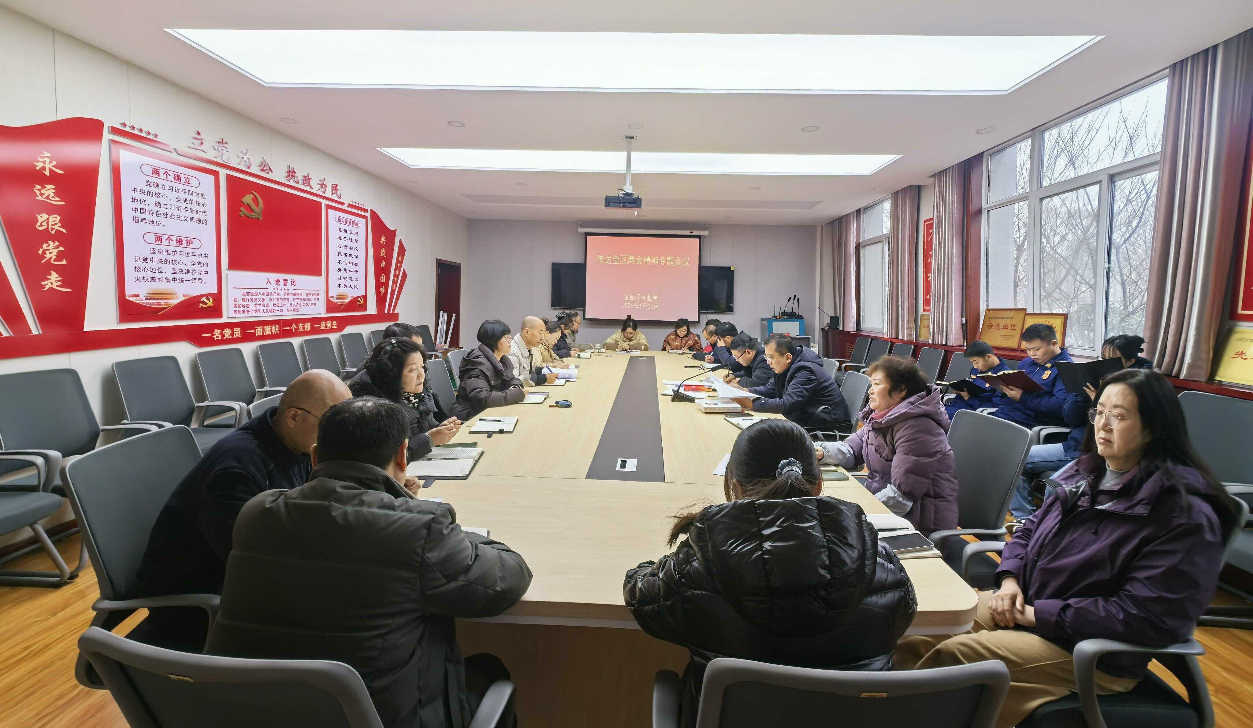 1月26日上午,区林业局召开专题会议,传达学习区两会精神,安排近期重点工作。区林业局各单位领导和局机关全体参加。