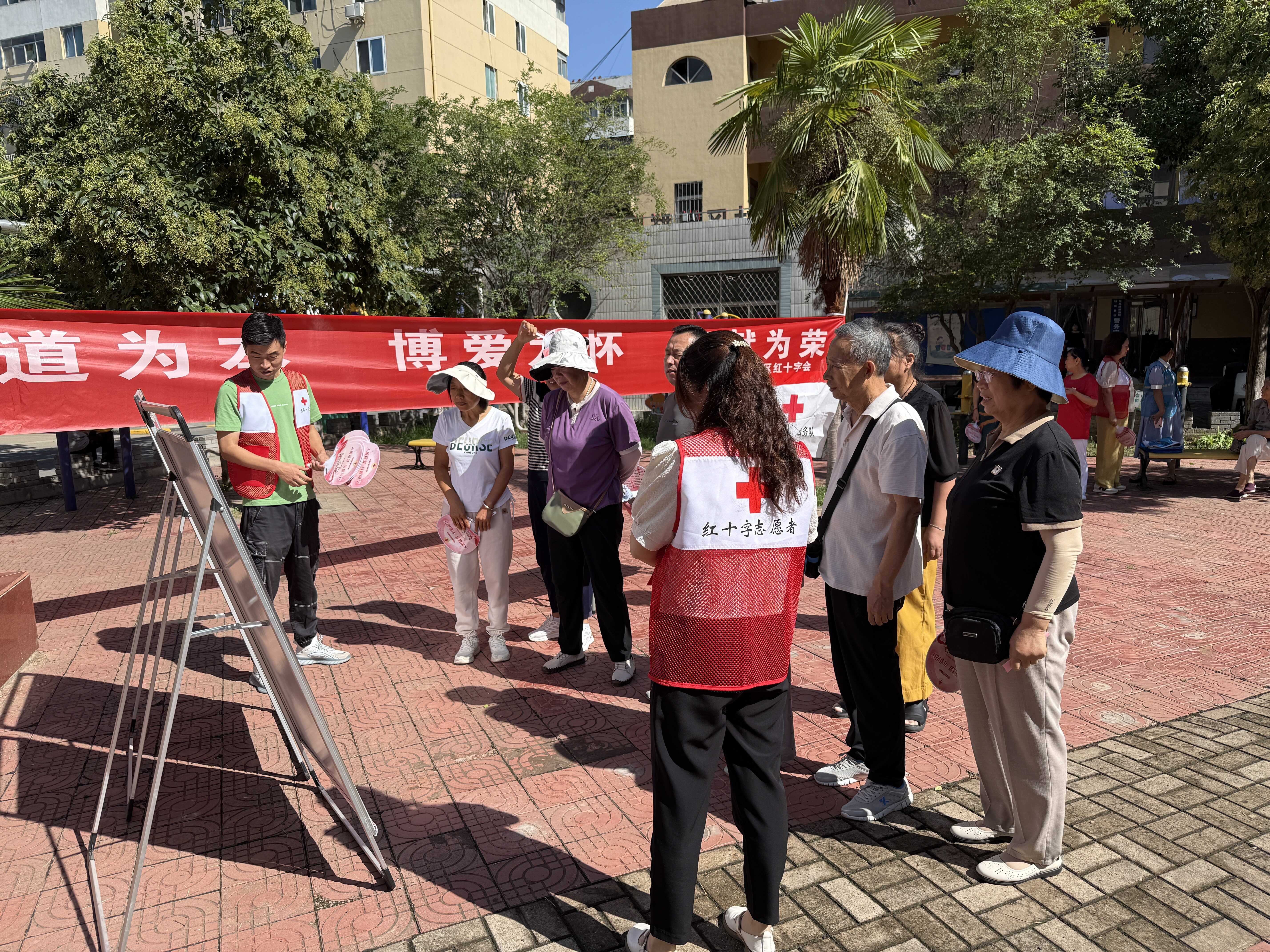 为了让宣传更接地气、更入人心,社区红十字会特别准备了一批印有红十字标志和公益宣传的团扇,在活动现场免费发放。小小的团扇不仅为居民们带来了夏日清凉,更成为传递红十字精神的“移动宣传卡”,让“人道、博爱、奉献”的理念在社区里悄然传播。