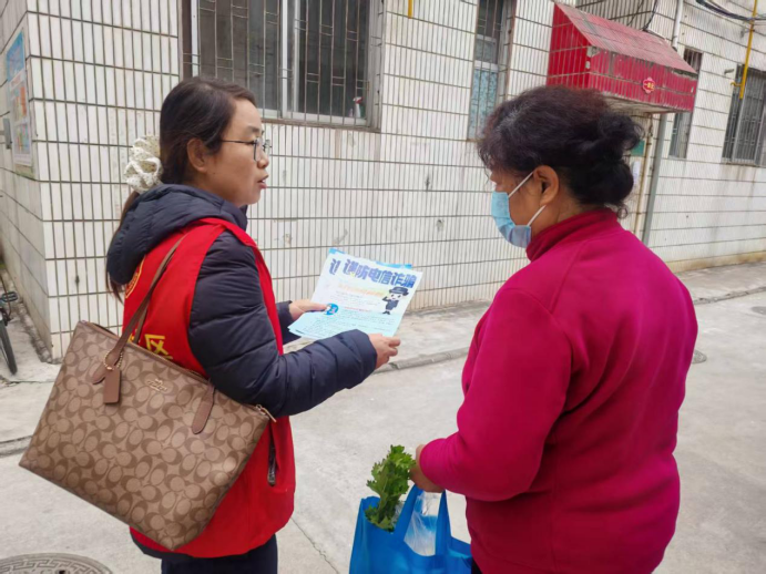 活动现场,身穿红马甲的社区工作人员带着反诈宣传册,穿梭在小区楼栋与沿街商铺之间,用通俗易懂的方言和居民“拉家常”。“阿姨,您看这个‘冒充客服退款’的骗局,最近好多老人中招啦,只要对方让您点链接、输验证码,咱一律不睬!”网格员指着宣传册上的案例,给刚买完菜的杨阿姨细致讲解;遇到驻足询问的居民,又拿出“反诈小口诀”,手把手教大家辨别“刷单返利”“虚假中奖”等常见诈骗套路。从小区门口的垃圾分类点,到居民楼的单元门前,大家的身影成了街巷里一道温暖的“红色风景线”,不少居民听完讲解后主动拿起宣传册,说要带回家给家人也“补补课”。