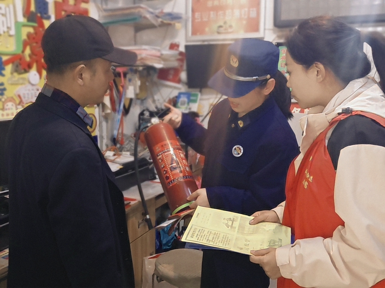 活动中,社区在广场向居民普及消费者权益保护相关法律知识,讲解网购陷阱、虚假宣传识别及投诉流程,引导居民科学消费、依法维权。工作人员还深入辖区商户,宣传诚信经营理念,倡导依法合规经营;同时,消防所工作人员还现场讲解真假灭火器辨别方法,指导核验消防产品资质,提醒杜绝使用不合格器材,并普及消防安全注意事项、应急处置等知识。