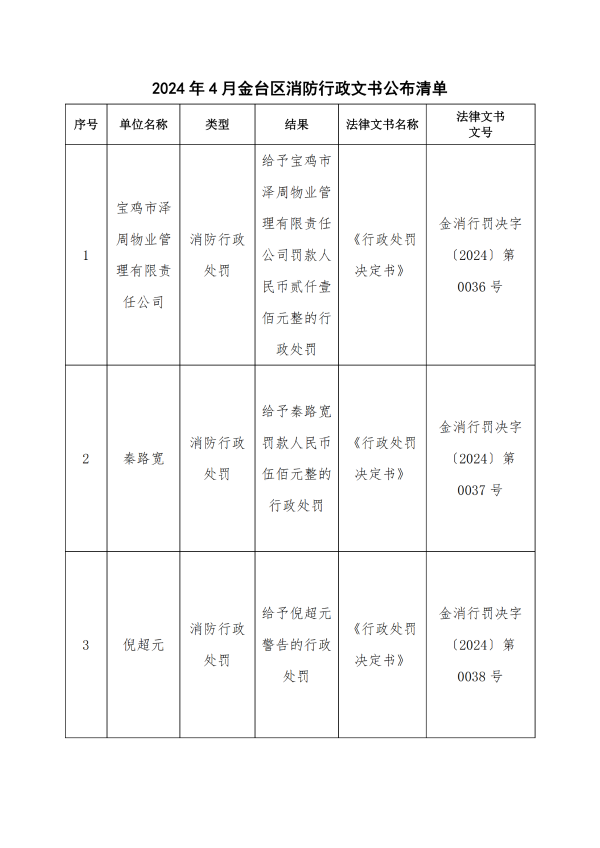 金台大队2024年4月“双随机、一公开”监督抽查结果公示