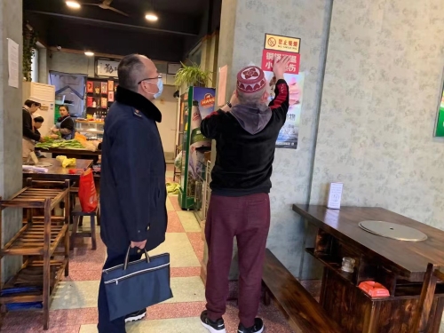 2.区市场监管局文明餐桌专班以决战决胜的工作状态,全力以赴持续做好文明餐桌创建工作。由分管领导带领餐饮股工作人员持续对行政中心,盛世广场,第五大道全面督导。由执法大队牵头重点对秦岭综合市场、人民街市场周边的小餐饮店进行督导检查。辖区市场所调配人员,强弱编组搭配,定路段、定任务,对辖区餐饮门店再进行拉网式排查。检查中坚持问题导向,加大宣传力度,引导群众自觉参与,提高广大群众对文明城市创建工作的知晓率和参与率,促使文明习惯养成。工作人员向经营户宣传创文和食品安全知识,对消毒、宣传、店内后厨卫生进行检查,现场发放文明餐桌标识90余个,张贴社会主义核心价值观宣传画90余副,张贴禁烟标识60余个。对个别商品未明码标价、消毒柜使用不规范等13个问题进行了纠正。在工作开展中餐饮股、执法大队与辖区市场所条块结合、协调联动,确保最短时间内将文明餐桌创建工作再提升一个新台阶。